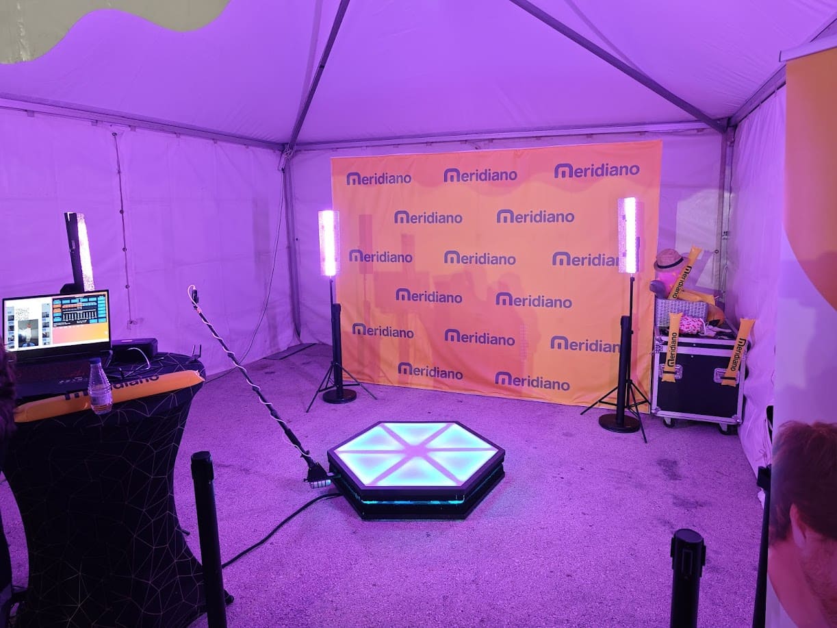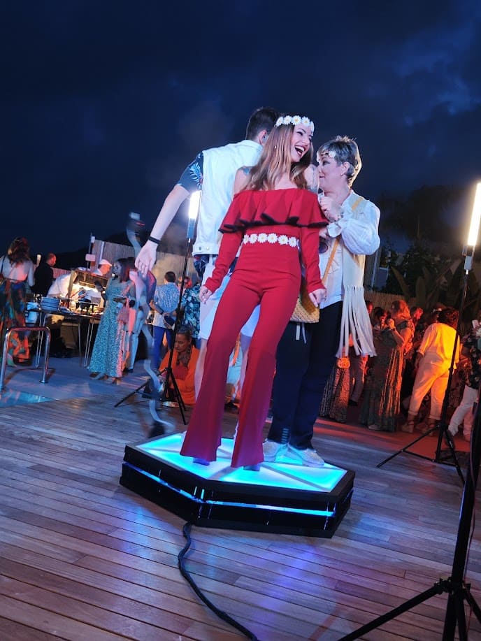 Para eventos con impacto. Los asistentes graban vídeos slow motion en una plataforma giratoria. Perfecto para stands, promociones y branding visual.